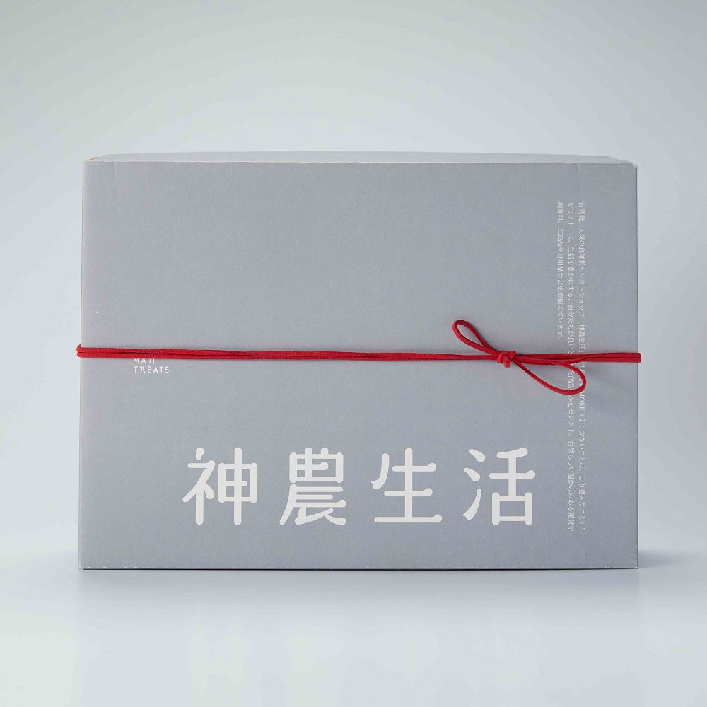 禮盒材質採用友善環境的再生能源紙,傳遞上專屬每一份共享台灣美味的心意。