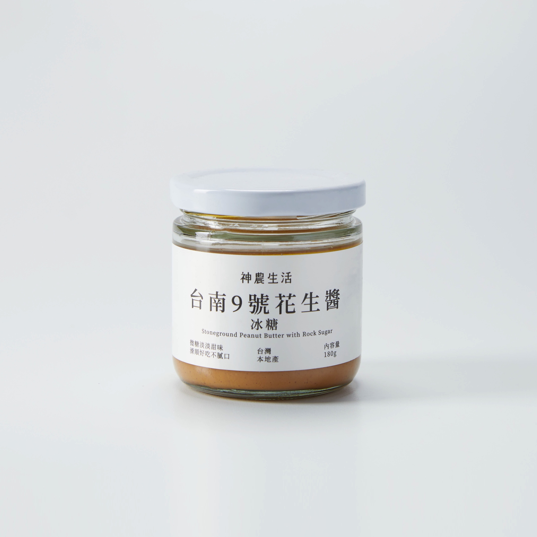 使用台灣9號花生以低溫慢火烘焙,再以石臼細緻研磨,製成口感滑順、香氣濃郁的花生醬,並加入冰糖提味。不含防腐劑、香料及化學添加物。