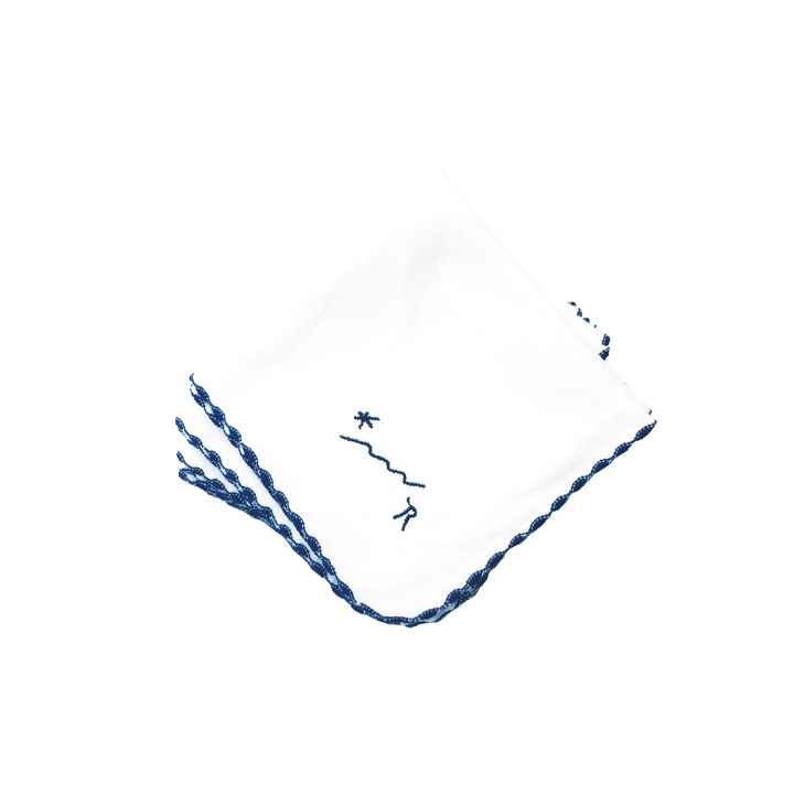 採用100%純棉方巾,車工細緻,輕巧方便,整體採簡約藍白色(或灰白系)的配色,彰顯恬淡的台式生活風格。