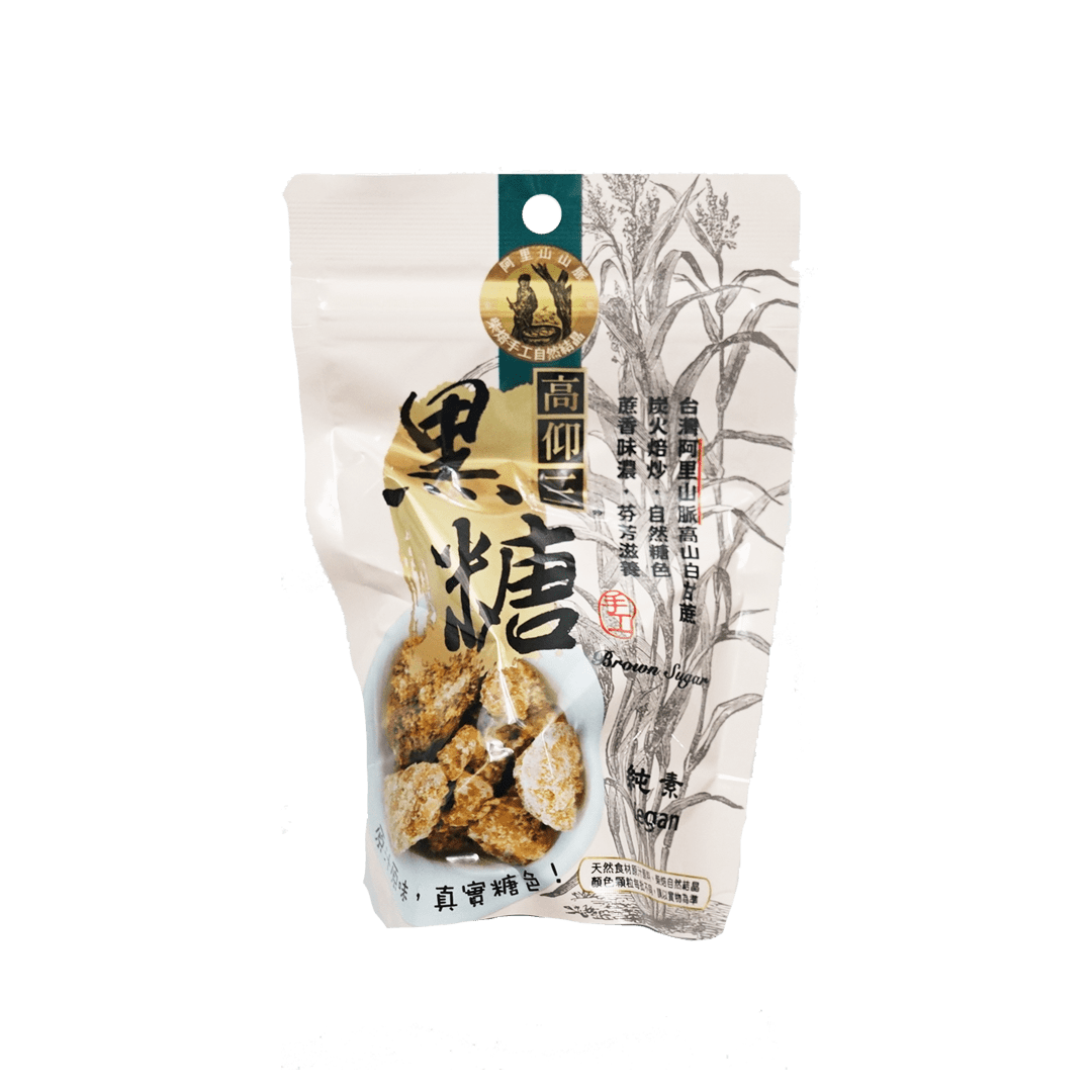 採用阿里山原生種白甘蔗,在高山低溫且溫差大的環境中緩慢的生長,兩年才採收一次,採收的甘蔗枝幹瘦小,堅硬而精實,纖維粗汁少,但味道卻極為甘甜。 採用人工榨汁,並用阿里山野櫻的炭火慢焙,並站立一整天不斷的翻炒,才能做出如此風味細緻,帶著清香甘甜的黑糖塊。