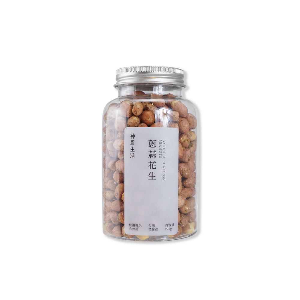 使用花蓮新九號花生,以職人精神低溫慢炒,重於營養與香氣的保留,不焦、不苦、不搶味,加入少許蒜片,吃的到蒜頭的辛香跟花生豆香。