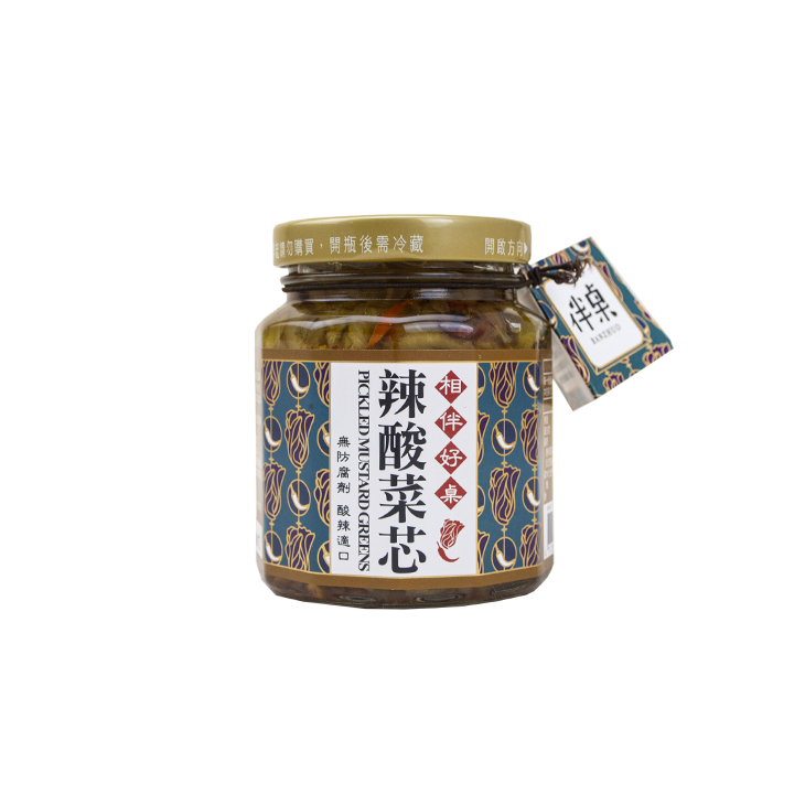 採用台灣新鮮芥菜,選用莖葉裡最好的部分製成酸菜,味道濃香厚實。大塊切片的朝天椒與酸菜芯美味結合,低油少鹽不鹹膩享用美食低負擔。酸辣爽脆的酸菜芯,煎煮拌炒皆適宜,隨時隨地都能搭出可口的佳餚,滿足味蕾。
