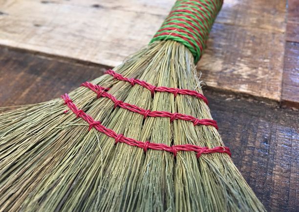採用吉祥草製作的小掃把,沒有任何化學製程,材質天然,友善環境。被稱作吉祥草的芒草,在台灣傳統宗教民俗與原住民文化中,常被視為驅邪之物,因此,吉祥草小掃把除了可拿來清掃,也常被倒掛於居家空間,作為趨吉避凶、避邪祈福之用。